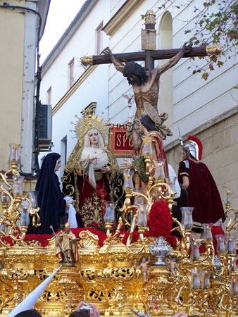De igual calidad que la Dolorosa es la imagen del San Juan. Perteneció a la antigua Hermandad de San Antón y durante el siglo XVIII procesionó junto a la Virgen de la Amargura (hoy titular de la Hermandad de la Flagelación). Al pie de la Cruz está la Magdalena; esta imagen la talló Antonio Eslava Rubio en el año 1959. Casi en la delantera del paso están María Cleofás y María Salomé. Parece que María Cleofás es la imagen que como Magdalena salía en un paso de misterio de la Soledad, a principio del siglo XX. María Salomé procede de la iglesia del desaparecido Convento de San Agustín. En la trasera van dos romanos. Fueron imágenes que se tallaron a finales del XVIII o principios del XIX para una hermandad de Cádiz. En 1921 "estaban" en Sevilla ya como romanos. En 1929 los compró la Hermandad de la Flagelación de Jerez, y a esta se los compró la Hermandad del Cristo del Amor en el año 45. El paso se estrenó en el año 1994.