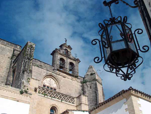 Iglesia de San Mateo. San Mateos es una más de las parroquias fundadas tras la Reconquista. La iglesia actual pertenece, en sus líneas generales, al gótico del tercer período. La portada principal se encuentra cegada por los desperfectos que sufrió tras el terremoto de Lisboa (1755) y que derrumbó la torre. La iglesia consta de una amplia nave y diez capillas laterales de sumo interés; debemos destacar la del Bautismo, la de los Suárez de Toledo, la de Villacreces . la del Sagrario, la de los Morla . El Retablo Mayor fue tallado en el siglo XVIII por el jerezano Andrés Benítez. Y de la segunda mitad del mismo siglo es la espadaña.