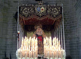 Santa e Insigne Iglesia Catedral de Nuestro Señor San Salvador. La sede canónica de esta hermandad es la Parroquia de San Dionisio, Patrón de la ciudad, y fundada por Alfonso el Sabio. De estilo mudéjar, presenta en su fachada principal tres rosetones, dos ventanas ciegas y una portada abocinada. El interior queda dividido en tres naves por pilares construidos en la primera mitad del siglo XV. Por estar esta iglesia en restauración la Hermandad del Mayor Dolor celebra sus cultos y hace la Estación de Penitencia desde la Santa Iglesia Catedral.