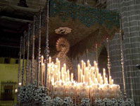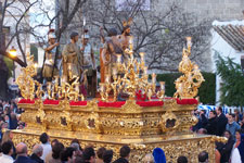 El paso de misterio, de madera tallada y dorada, es de estilo churrigueresco; lo comenzó el jerezano Julio Domínguez y lo terminó, en Sevilla, José Ovando Merino. Sobre la canastilla, en el primer término, va la imagen del Titular y dos sayones. En el centro, un pretor; y en la trasera del paso, dos romanos. Las cinco figuras son del imaginero Ramón Chaveli, son de talla y paños encolados, y las realizó entre los años 1939 y 40. En el paso de palio toda la orfebrería es del taller de Villarreal; y debemos destacar los motivos y escenas que decoran los respiraderos. Los faldones, el palio y el manto de la Dolorosa son de terciopelo azul celeste. Todas estas piezas fueron bordadas en oro por las Carmelitas de la Caridad en el taller que tuvieron en Jerez.