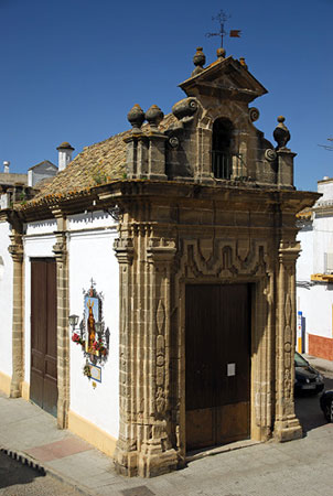 Capilla de la Yedra. En 1715 se solicitó construir un templete para proteger una cruz con la efigie de Cristo. Y a costa de los hermanos de la Santa Cruz de la Yedra se levantó la ermita en 1720. Fue ampliada en la segundad mitad del mismo siglo, y llegó a ser auxiliar de la Parroquia de San Miguel. La diminuta fachada - coronada por una sencilla espadaña - queda totalmente decorada por el baquetón mixtilíneo que rodea la portada. Del interior, cubierto por bóveda de cañón, destaca por su calidad la imagen de la Dolorosa, titular de esta hermandad. Tallada en los primeros años del siglo XVIII, es casi seguro que su autor sea Diego Roldán.
