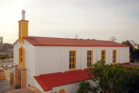 Parroquia de Nuestra Señora de las Viñas. La Parroquia de la Asunción fue creada en el año 1957, cambiando al poco tiempo su título por el de Ntra. Sra. de las Viñas, pues la iglesia está en la Barriada de la Vid. En muchos aspectos nos recuerda a la Parroquia de Santa Ana, y es lógico, puesto que el autor de los dos proyectos fue el mismo arquitecto: D. Fernando de la Cuadra e Irízar. El muro que cierra el presbiterio está recubierto de azulejos de distintos tonos de color azul. Sobre este fondo vemos colocado un relieve casi de bulto redondo que representa la Asunción de la Virgen. Este bello grupo de la Virgen y los ángeles es obra del escultor gaditano Juan Luís Vassallo.