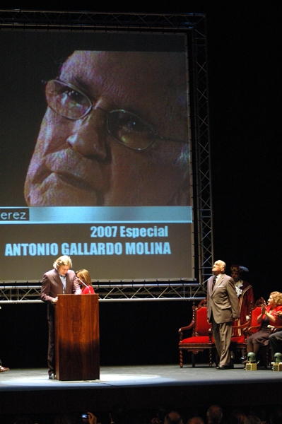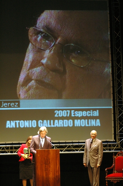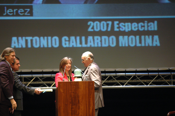 La alcaldesa, Pilar Sánchez, presidió el 9 de octubre, día de San Dionisio, patrón de Jerez, la Gala de los Premios Ciudad de Jerez 2007, celebrada en un nuevo escenario, el Teatro Villamarta, que permitió el acceso a un número mayor de jerezanos y jerezanas. En un acto emotivo y alegre, lleno de recuerdos, de homenaje a los seres queridos, al pueblo de Jerez y con un público entregado, la alcaldesa ha otorgado los galardones, entre los que destacó el Premio Especial Ciudad de Jerez a Antonio Gallardo Molina, por su trayectoria como letrista y compositor, vinculada a la ciudad de Jerez. Una persona que, en palabras de la alcaldesa “ha demostrado que la defensa y promoción de Jerez, de todo cuanto significa esta gran ciudad, puede resumirse en una copla”.