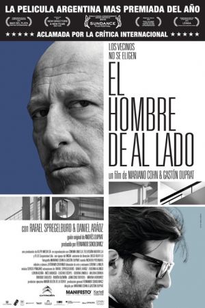 “El hombre de al lado” narra un conflicto entre vecinos que parece no tener fin. Una simple pared puede dividir dos mundos, dos maneras de vestir, de comer, de vivir. De un lado, Leonardo, fino y prestigioso diseñador que vive en una casa realizada por Le Corbusier. Del otro lado Víctor, vendedor de coches usados, vulgar, rústico y avasallador. Víctor decide hacer una ventana para tener más luz, y ahí empieza el problema: cada uno toma conciencia de la existencia del otro. La mirada del extraño corroe y pone en entredicho una vida aparentemente normal, y abre la puerta a los miedos, a las miserias y a las actitudes más viles.