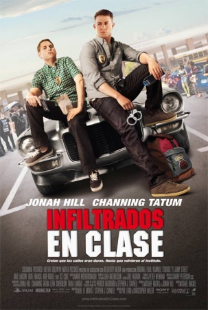 Película: Infiltrados en clase. Título original: 21 Jump Street. AKA: Jóvenes policías. Dirección: Phil Lord y Christopher Miller. País: USA. Año: 2012. Duración: 109 min. Género: Comedia, acción. Interpretación: Jonah Hill (agente Schmidt), Channing Tatum (agente Jenko), Ice Cube (capitán Dickson), Brie Larson (Molly), Dave Franco (Eric), Rob Riggle (Sr. Walters), Ellie Kemper (Srta. Griggs), Johnny Depp (Tom Hanson), Holly Robinson (Judy Hoffs), Johnny Simmons (Billiam). Guion: Michael Bacall; a partir de un argumento de Michael Bacall y Jonah Hill; basado a su vez en la serie de televisión creada por Patrick Hasburgh y Stephen J. Cannell. Producción: Stephen J. Cannell y Neal H. Moritz. Música: Mark Mothersbaugh. Fotografía: Barry Peterson. Montaje: Joel Negron. Diseño de producción: Peter Wenham. Vestuario: Leah Katznelson. Distribuidora: Sony Pictures Releasing de España. Estreno en USA: 16 Marzo 2012. Estreno en España: 11 Mayo 2012.