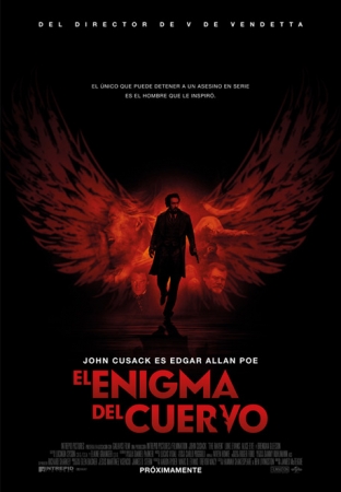 Película: El enigma del cuervo. Título original: The raven. Dirección: James McTeigue. Países: USA, Hungría y España. Año: 2012. Duración: 110 min. Género: Thriller. Interpretación: John Cusack (Edgar Allan Poe), Luke Evans (detective Emmett Fields), Alice Eve (Emily Hamilton), Brendan Gleeson (coronel Hamilton), Oliver Jackson-Cohen (John Cantrell), Kevin McNally (Maddux). Guion: Ben Livingston y Hannah Shakespeare. Producción: Marc D. Evans, Trevor Macy y Aaron Ryder. Música: Lucas Vidal. Fotografía: Danny Ruhlmann. Montaje: Niven Howie. Diseño de producción: Roger Ford. Vestuario: Carlo Poggioli. Distribuidora: Universal Pictures International Spain. Estreno en USA: 27 Abril 2012. Estreno en España: 29 Junio 2012.