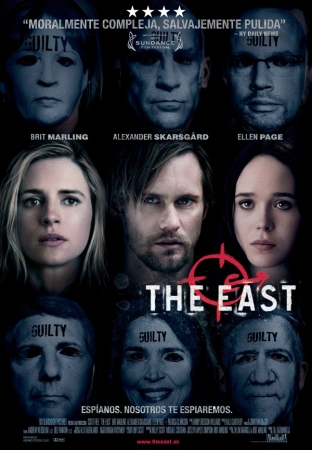 Película: The East. Dirección: Zal Batmanglij. Países: USA y Reino Unido. Año: 2013. Duración: 116 min. Género: Thriller. Interpretación: Brit Marling (Sarah Moss), Alexander Skarsgård (Benji), Ellen Page (Izzy), Toby Kebbell (Doc), Shiloh Fernandez (Luca), Julia Ormond (Paige Williams), Patricia Clarkson (Sharon), Aldis Hodge (Thumbs), Danielle Macdonald (Tess), Hillary Baack (Eve). Guion: Zal Batmanglij y Brit Marling. Producción: Ridley Scott, Michael Costigan, Joselyn Hayes- Simpson y Brit Marling. Música: Halli Cauthery. Temas musicales: Harry Gregson-Williams. Fotografía: Roman Vasyanov. Montaje: Andrew Weisblum y Bill Pankow. Diseño de producción: Alex DiGerlando. Vestuario: Jenny Gering. Estreno en USA: 31 Mayo 2013. Estreno en España: 12 Julio 2013.