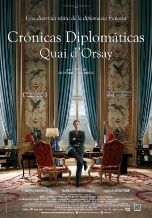 Película: Crónicas diplomáticas. Título original: Quai d’Orsay. Dirección: Bertrand Tavernier. País: Francia. Año: 2013. Duración: 113 min. Género: Comedia. Interpretación: Tierry Lhermitte (Alexandre Taillard de Worms), Raphaël Personnaz (Arthur Vlaminck), Niels Arestrup (Claude Maupas), Bruno Raffaelli (Stéphane Cahut), Julie Gayet (Valérie), Anaïs Demoustier (Marina), Thomas Chabrol (Sylvain), Thierry Frémont (Guillaume van Effentem). Guion: Christophe Blain y Abel Lanzac. Producción: Frédéric Bourboulon y Jérôme Seydoux. Música: Philippe Sarde. Fotografía: Jérôme Alméras. Montaje: Guy Lecorne. Diseño de producción: Sibilla Patrizi. Vestuario: Caroline de Vivaise. Distribuidora: Golem. Estreno en Francia: 6 Noviembre 2013. Estreno en España: 4 Abril 2014.