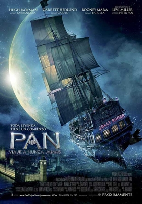 Película: Pan (Viaje a Nunca Jamás). Título original: Pan. Dirección: Joe Wright. País: USA. Año: 2015. Género: Aventuras, comedia, familiar. Interpretación: Hugh Jackman (Barbanegra), Levi Miller (Peter Pan), Amanda Seyfried (Mary), Rooney Mara (Tigrilla), Garrett Hedlund (Garfío). Guion: Jason Fuchs; basado en los personajes de J.M. Barrie. Distribuidora: Warner Bros. Pictures International EspañaEstreno en España: 9 Octubre 2015.