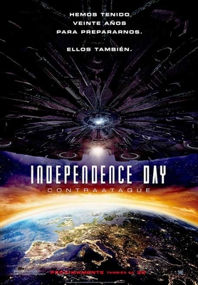 Película: Independence Day: Contraataque. Título original: Independence Day: Resurgence. Dirección: Roland Emmerich. País: USA. Año: 2016. Duración: 120 min. Género: Acción, ciencia-ficción. Reparto: Liam Hemsworth, Jeff Goldblum, Bill Pullman, Judd Hirsch, Vivica A. Fox, Brent Spiner, Charlotte Gainsbourg, Jessie Usher, Maika Monroe, Sela Ward. Guion: Carter Blanchard; basado en los personajes creados por Roland Emmerich y Dean Devlin. Estreno en España: 1 Julio 2016.