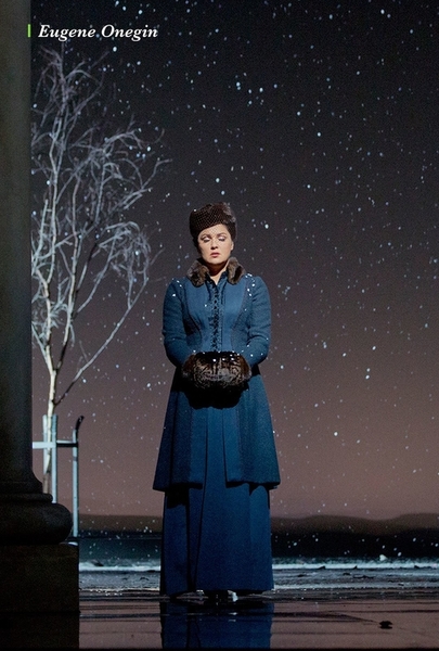 El escenario de Tchaikovsky de la novela del eterno verso de Pushkin es presentada en los escenarios del Met con la producción Beborah Warner, protagonizada por Anna Netrebko y Dmitri Hvorostovsky como Tatiana y Onegin. Alexey Dolgov canta en el papel de Lenski. Dirigida por Robin Ticciati.