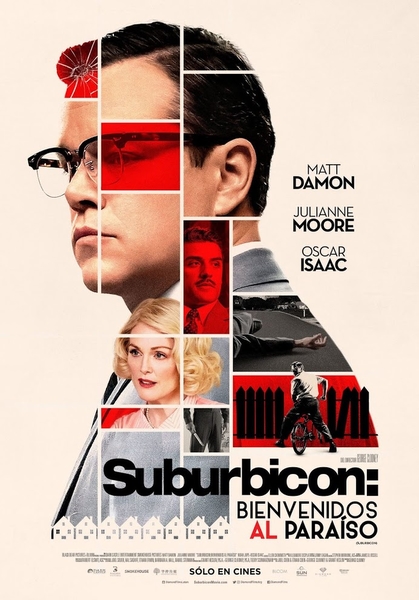 Título original: Suburbicon, Año: 2017, Duración: 105 min, País: Estados Unidos, Dirección: George Clooney, Guion: Ethan Coen, Joel Coen, George Clooney, Grant Heslov, Música: Alexandre Desplat, Fotografía: Robert Elswit, Reparto: Matt Damon, Julianne Moore, Óscar Isaac, Glenn Fleshler, Michael D. Cohen, Noah Jupe, Steve Monroe, Gary Basaraba, George Todd McLachlan, Carter Hastings, Dash Williams, Alex Hassell, Lauren Burns, Tony Espinosa, Productora: Black Bear Pictures / Silver Pictures / Smoke House Pictures, Género: Cine negro. Drama. Comedia | Neo-noir. Crimen. Años 50