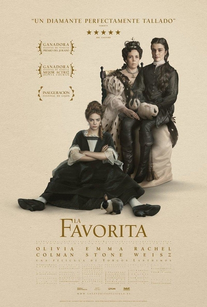 Título original: The Favourite, Año: 2018, Duración: 121 min, País: Reino Unido, Dirección: Yorgos LanthimosGuion: Deborah Davis, Tony McNamara, Fotografía: Robbie Ryan, Reparto: Olivia Colman, Emma Stone, Rachel Weisz, Nicholas Hoult, Joe Alwyn,James Smith, Mark Gatiss, Jenny Rainsford, Tim Ingall, Basil Eidenbenz,Timothy Innes, Jack Veal, James Melville, Hannah Morley, John LockeProductora: Coproducción Reino Unido-Irlanda-Estados Unidos; Element Pictures / Scarlet Films / Film4 Productions / Waypoint Entertainment. Distribuida por Fox Searchlight, Género: Drama | Comedia negraSiglo XVIII