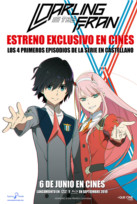 En un futuro distante, la última esperanza de la humanidad frente a los invasores klaxosaurios reside en la relación entre el niño piloto Hiro y la misteriosa Cero Dos. En exclusiva en Yelmo Cines, ofrecemos los cuatro primeros episodios de esta serie. EPISODIO 1: UNA PERSONA SOLA En un futuro distante, la humanidad habita en ciudades fortaleza para protegerse de los ataques de los monstruos gigantes llamados klaxosaurios. Su única esperanza reside en los niños piloto de los robots gigantes conocidos como FranXX. EPISODIO 2: ¿QUÉ ES CONECTAR? Dado que ni él mismo lo recuerda, existen muchas dudas acerca de que Hiro pilotara el Strelizia junto a Cero Dos. Así pues, se decide llevar a cabo un combate de prueba de cuyo resultado depende que Hiro sea elegido como piloto. EPISODIO 3: MARIONETAS DE COMBATE Tras el fracaso del combate de prueba, la relación entre Ichigo y Hiro se enrarece. Mientras tanto, sus compañeros pilotos realizan su primera salida, que acaba en desastre, obligando a intervenir a Cero Dos, esta vez acompañada por Mitsuru. EPISODIO 4: FLAP FLAP Tras la batalla anterior, el malherido Mitsuru recupera la conciencia traumatizado por su experiencia con Cero Dos. Poco después, las autoridades ordenan el regreso de Cero Dos y Strelizia a la línea de frente obligando a Hiro a actuar.