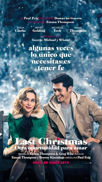 Título original: Last Christmas, Año: 2019, Duración: 102 min, País: Reino Unido, Dirección: Paul FeigGuion: Bryony Kimmings, Emma Thompson, Música: Theodore Shapiro, Fotografía: John Schwartzman, Reparto: Emilia Clarke, Henry Golding, Michelle Yeoh, Emma Thompson, Lydia Leonard, Patti LuPone, Ingrid Oliver, Rebecca Root, Sue Perkins, David Mumeni, Davina Sitaram, Jade Anouka, Joakim Skarli, Ritu Arya, Ruth Horrocks, Peter Mygind, Nasir Jama, Helena Holmes, Rene Costa, Laura Evelyn, Joe Blakemore, Martyn Mayger, Jassie MortimerProductora: Coproducción Reino Unido-Estados Unidos; Universal Pictures. Distribuida por Universal Pictures, Género: RomanceComedia | Comedia románticaNavidad