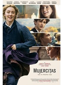 Título original: Little Women, Año: 2019, Duración: 135 min, País: Estados Unidos, Dirección: Greta GerwigGuion: Greta Gerwig, Música: Alexandre Desplat, Fotografía: Yorick Le Saux, Reparto: Saoirse Ronan, Emma Watson, Timothée Chalamet, Laura Dern, Meryl Streep, Florence Pugh, James Norton, Eliza Scanlen, Louis Garrel, Bob Odenkirk, Chris Cooper, Tracy Letts, Abby Quinn, Sasha Frolova, Jamie Ghazarian, Hadley Robinson, Ken Holmes, David Arthur Sousa, Jayne Houdyshell, Jen Nikolaisen, Domenic Arduino, Tom Kemp, Mikayla S. Campbell, Edward Fletcher, Lilly Englert, Rob Lévesque, Kayla Caulfield, Cassidy Neal, Adam Desautels, Bill Salvatore, Dash Barber, Jason Mulcahy, Tom Stratford, Erin Rose, Lonnie Farmer, Robert Marsella, Bill Mootos, Yefim Somin, Adam Teper, Alexander Davis, Thomas J Berry, Scott Sederquist, Michael Cassata, Dave Maguire, Yair Koas, Brian TobinProductora: Columbia Pictures / Sony Pictures Entertainment (SPE) / New Regency Pictures / Pascal Pictures / Regency Enterprises. Distribuida por Columbia Pictures,