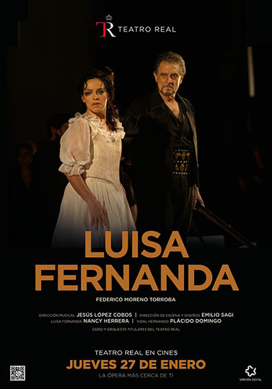 El tenor Plácido Domingo encabeza el reparto de la zarzuela Luisa Fernanda, grabada en el Teatro Real. Situada en el Madrid de la Restauración borbónica, Luisa Fernanda contiene algunos de los números más inspirados de nuestro género lírico, que le han dado su enorme popularidad desde su estreno en el Teatro Calderón de Madrid el 26 de marzo de 1932. El montaje ha sido coproducido junto con la ópera de Washington (donde se representó en 2004) y la de Los Ángeles (2007) y cuenta con Jesús López Cobos en la dirección musical, Emilio Sagi a cargo de la dirección escénica y un magnífico elenco de intérpretes encabezados por Plácido Domingo. El tenor madrileño no pisaba el escenario del Real desde el año 2004, cuando interpretó La Dama de Picas, de Tchaikovsky. Plácido Domingo interpreta a Vidal, regresando así a sus orígenes como barítono, tras haber encarnado en otras ocasiones el personaje de Javier. La protagonista, Luisa Fernanda, es la mezzosoprano canaria, nacida en Buenos Aires, Nancy Herrera; aquí como soprano. El papel de Javier Moreno corre a cargo del tenor catalán José Bros y el de la duquesa Carolina, el cuarto de los personajes principales, interpretado por la soprano granadina Mariola Cantarero.